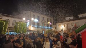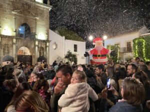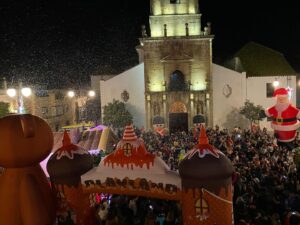 La gran nevada artificial en la Plaza de la Iglesia ha culminado el programa de actividades previstas hoy sábado para festejar en Los Barrios la inminente llegada de la Navidad.