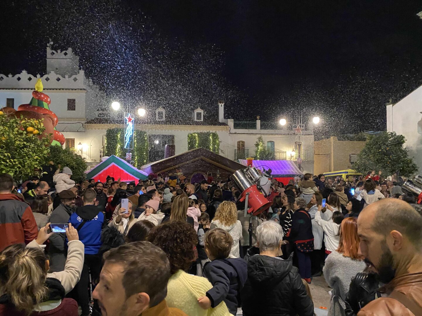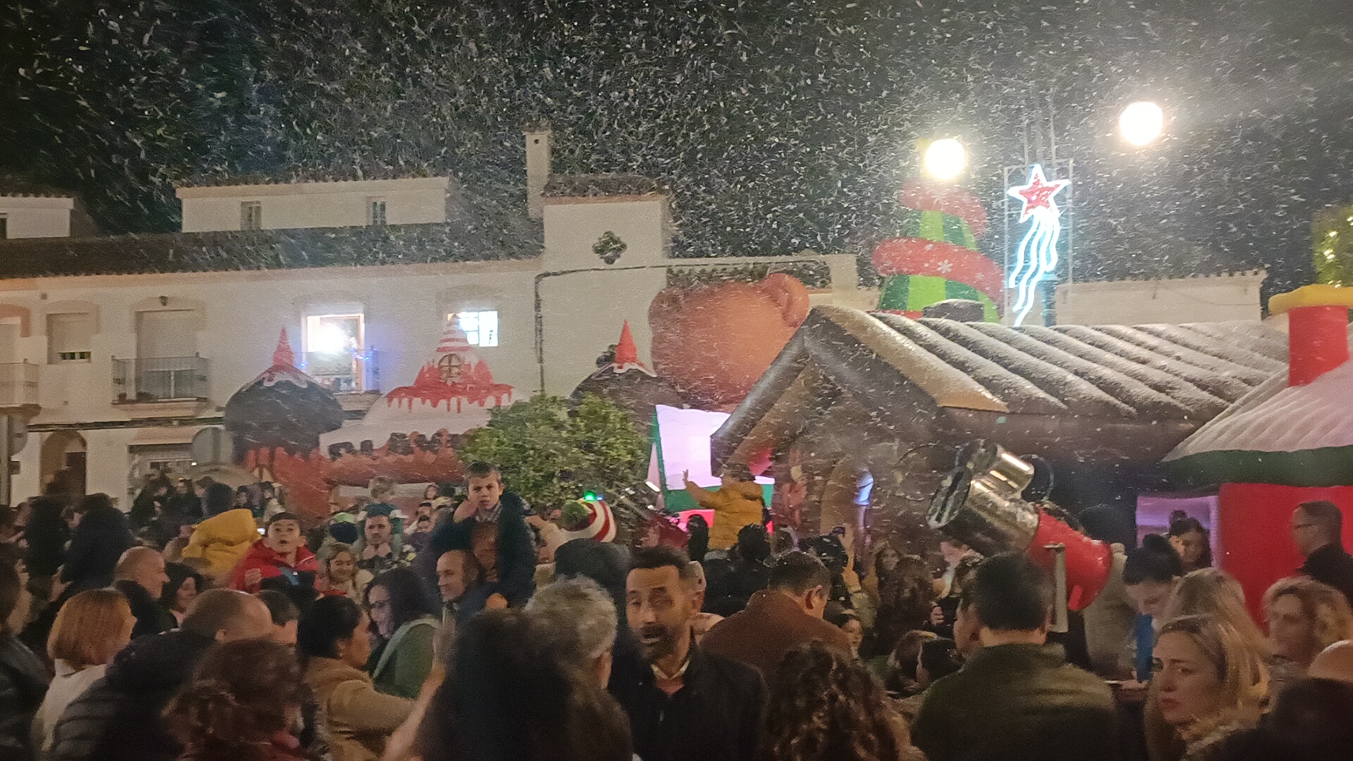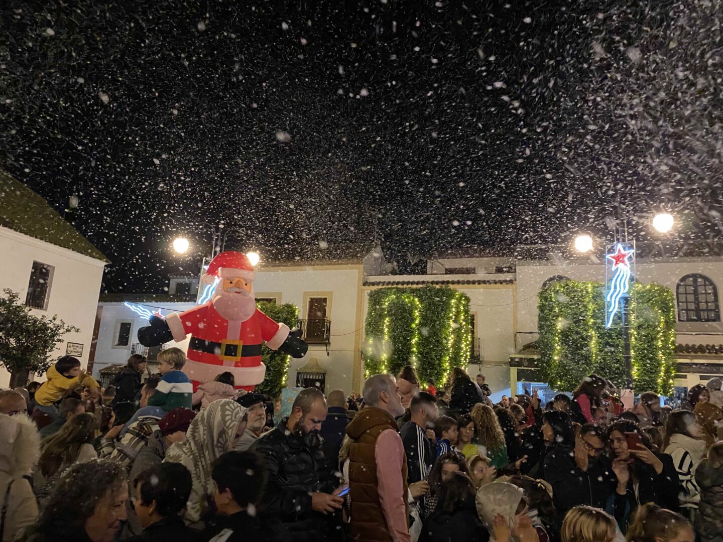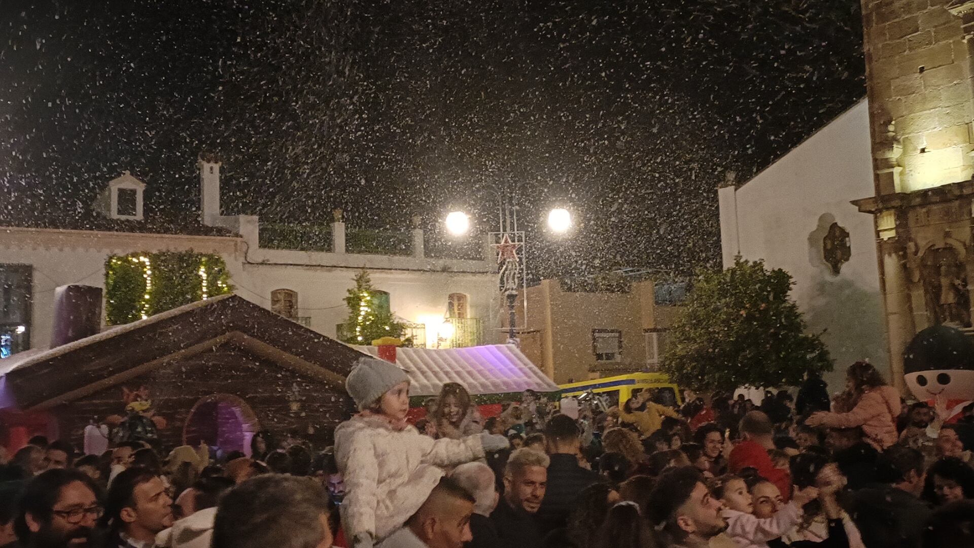 La gran nevada artificial en la Plaza de la Iglesia ha culminado el programa de actividades previstas hoy sábado para festejar en Los Barrios la inminente llegada de la Navidad.