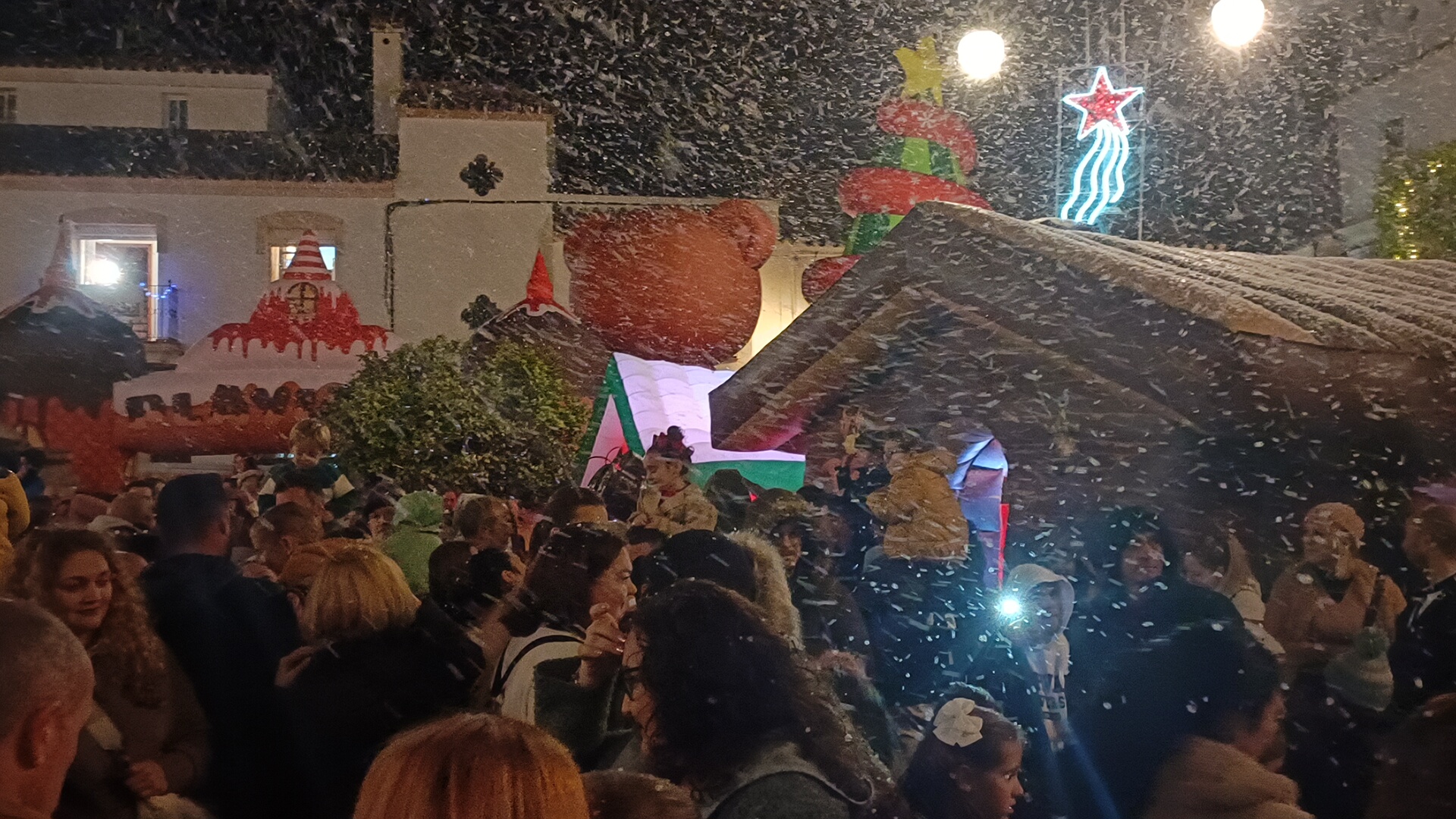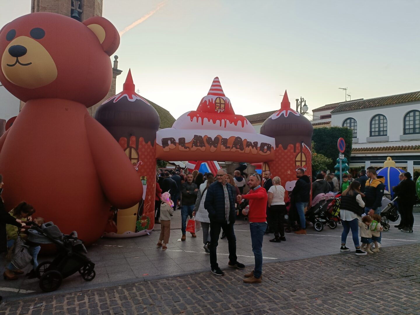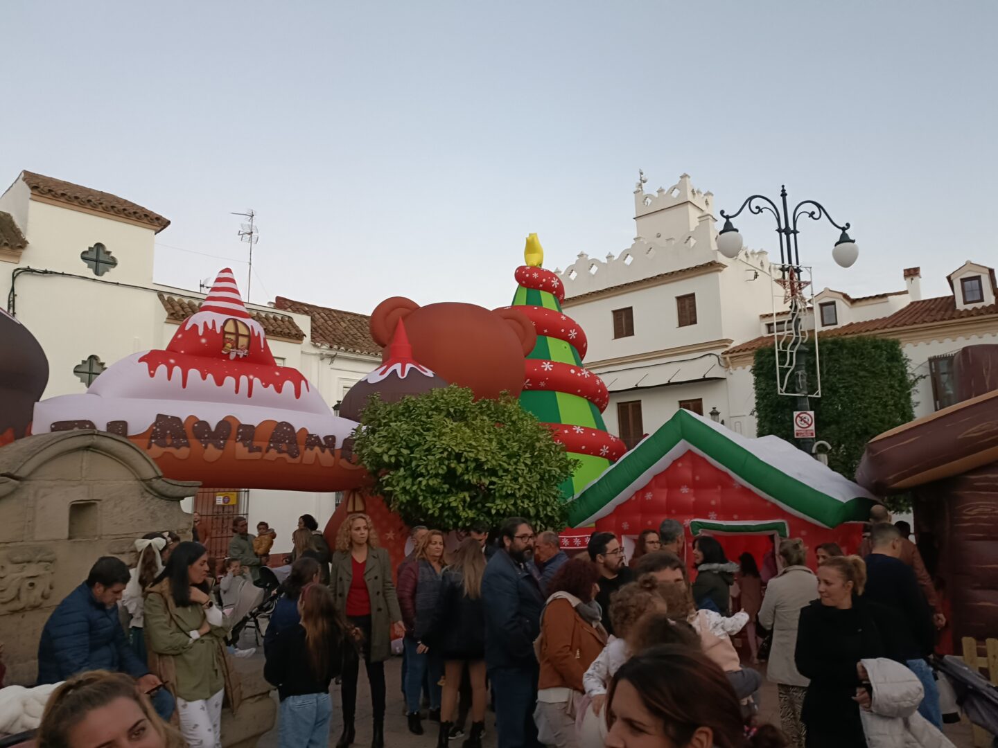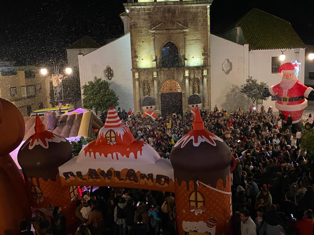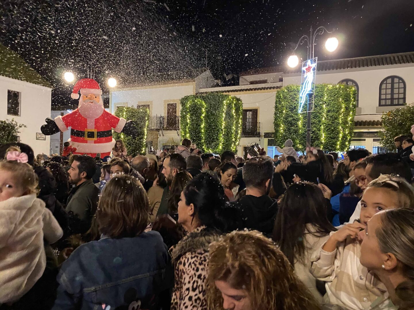 La gran nevada artificial en la Plaza de la Iglesia ha culminado el programa de actividades previstas hoy sábado para festejar en Los Barrios la inminente llegada de la Navidad.