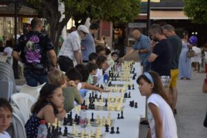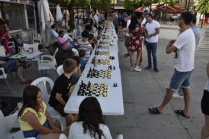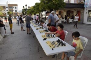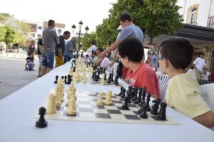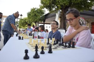 La Escuela Municipal de Ajedrez, celebra su particular fiesta para poner el cierre al curso 2021-2022. Sesión de partidas simultáneas en las que un jugador del Club de Ajedrez de Los Barrios se enfrentará a 20 rivales en el Paseo de la Constitución,