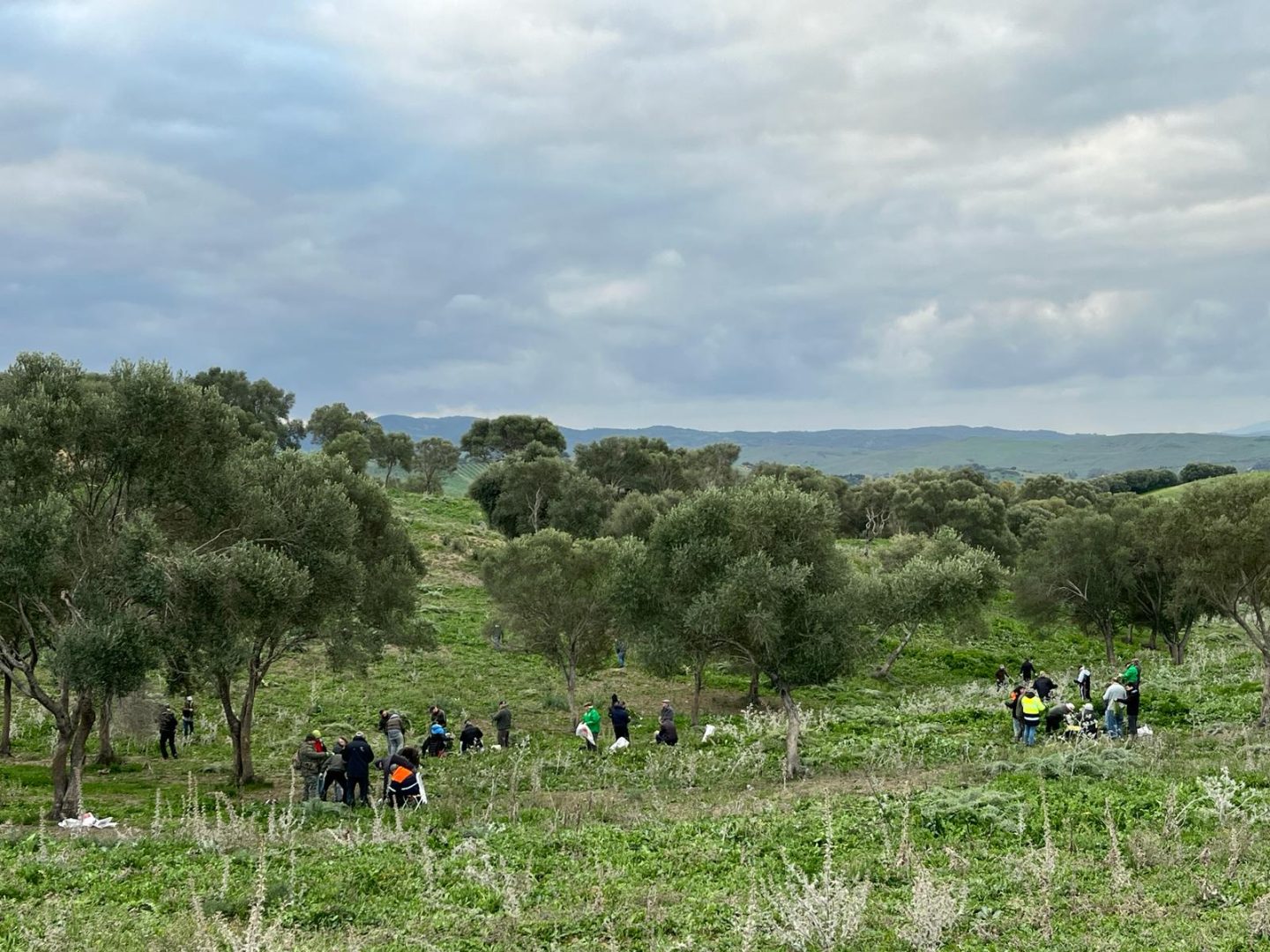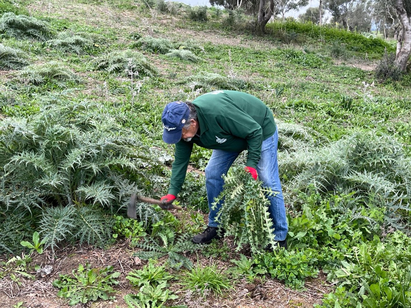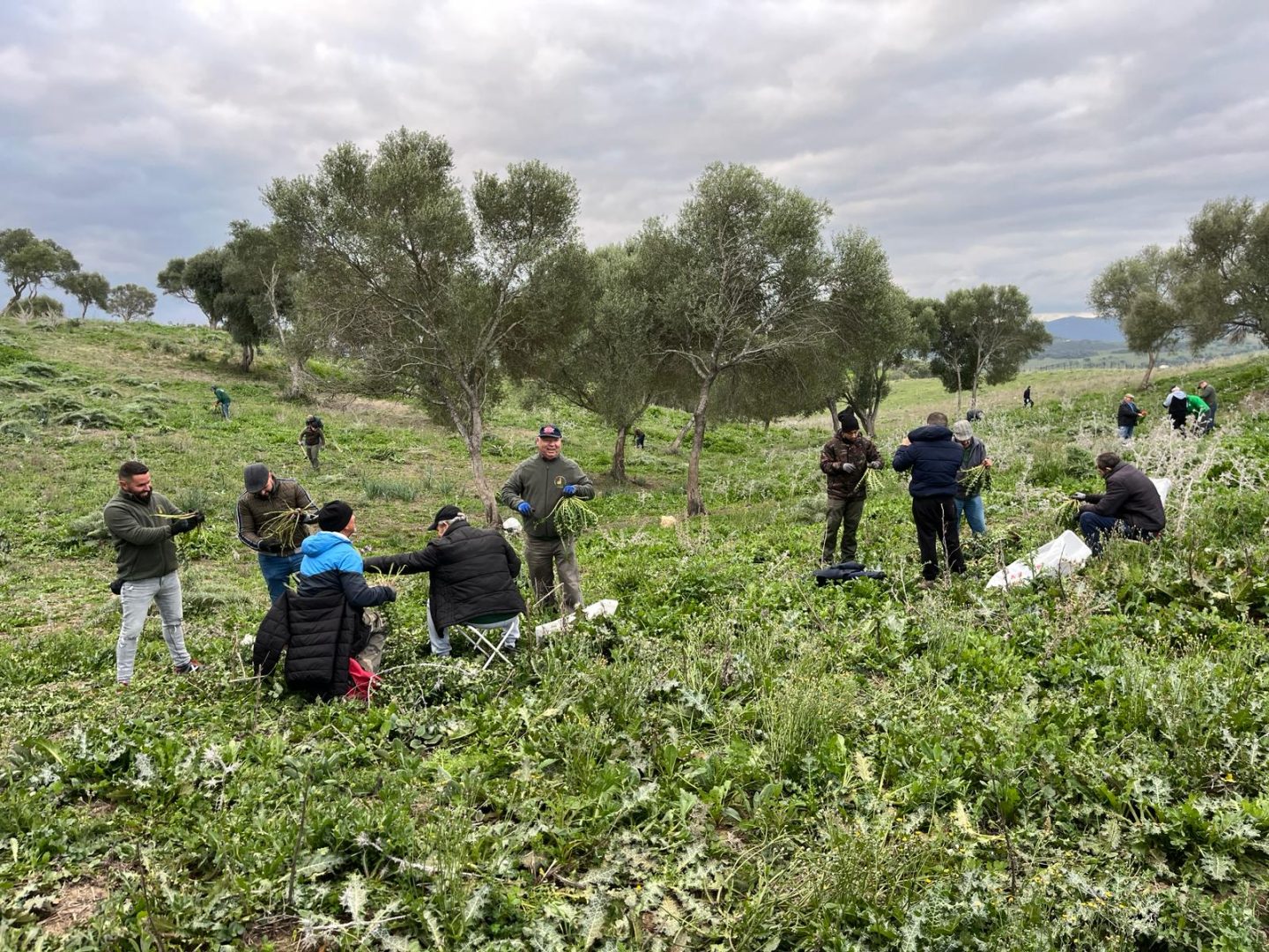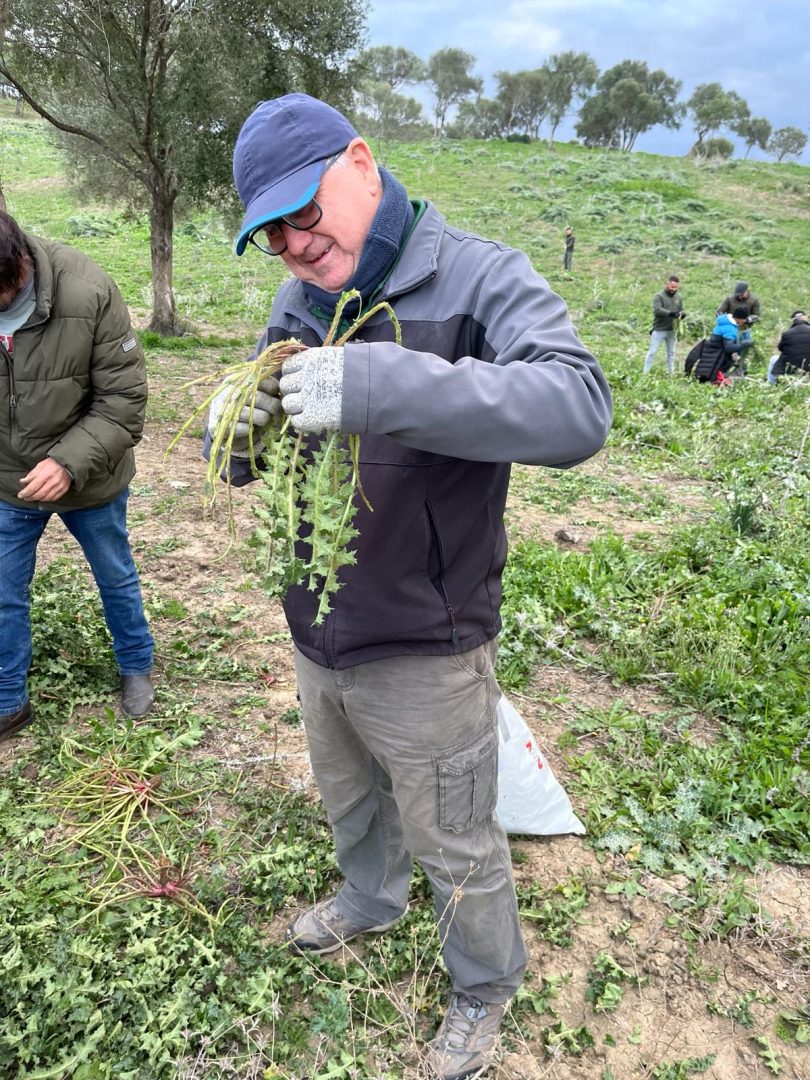 Socios y colaboradores de la peña La Tagarnina están procediendo desde el amanecer a la recogida de tagarninas para la popular Ada que se celebrará el próximo sábado 10 de febrero en la explana del polideportivo San Rafael.