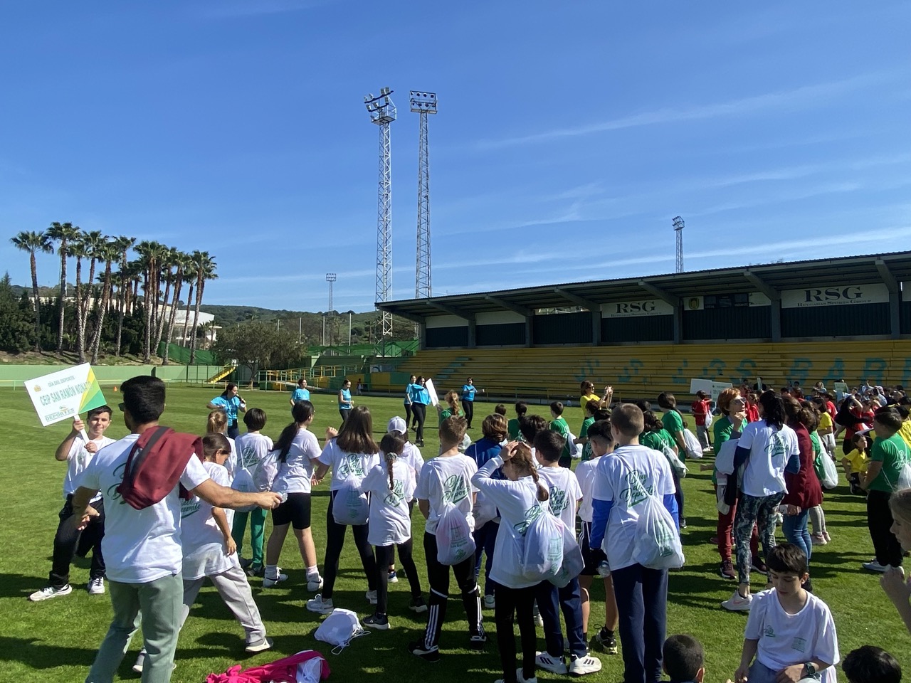 Unos quinientos niños y niñas de 4º y 5º de Primaria de los colegios San Isidro Labrador, Maestro Juan González, San Ramón Nonato y Luis Lamadrid, de Los Barrios, así como del centro de Los Cortijillos y el de Nuestra Señora de Guadalupe de Palmones, han participado en esta jornada festiva y también reivindicativa sobre la importancia que tiene el juego y el ejercicio físico para promover valores y mejorar la calidad de vida.