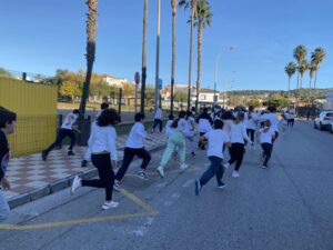 Escolares de los diferentes cursos, acompañados de sus profesores, han efectuado un recorrido simbólico de ida y vuelta por parte de la avenida Doña Rosa García López-Cepero, los alrededores de las instalaciones del polideportivo ‘San Rafael’, el pabellón ‘Soldado Samuel Aguilar’ y el campo de fútbol ‘Carlos Piña’, para mostrar su apoyo a este colectivo de población.