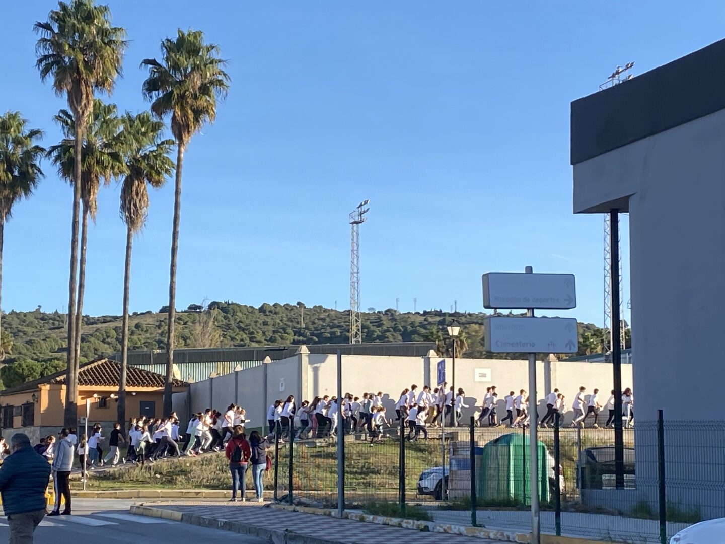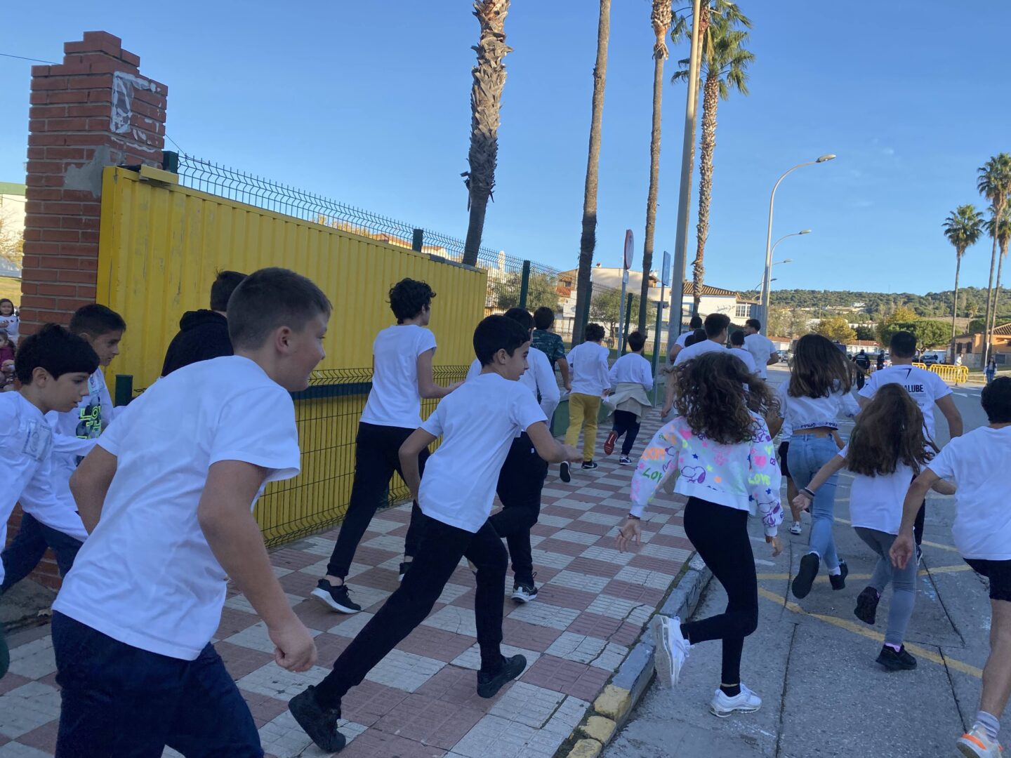 Escolares de los diferentes cursos, acompañados de sus profesores, han efectuado un recorrido simbólico de ida y vuelta por parte de la avenida Doña Rosa García López-Cepero, los alrededores de las instalaciones del polideportivo ‘San Rafael’, el pabellón ‘Soldado Samuel Aguilar’ y el campo de fútbol ‘Carlos Piña’, para mostrar su apoyo a este colectivo de población.