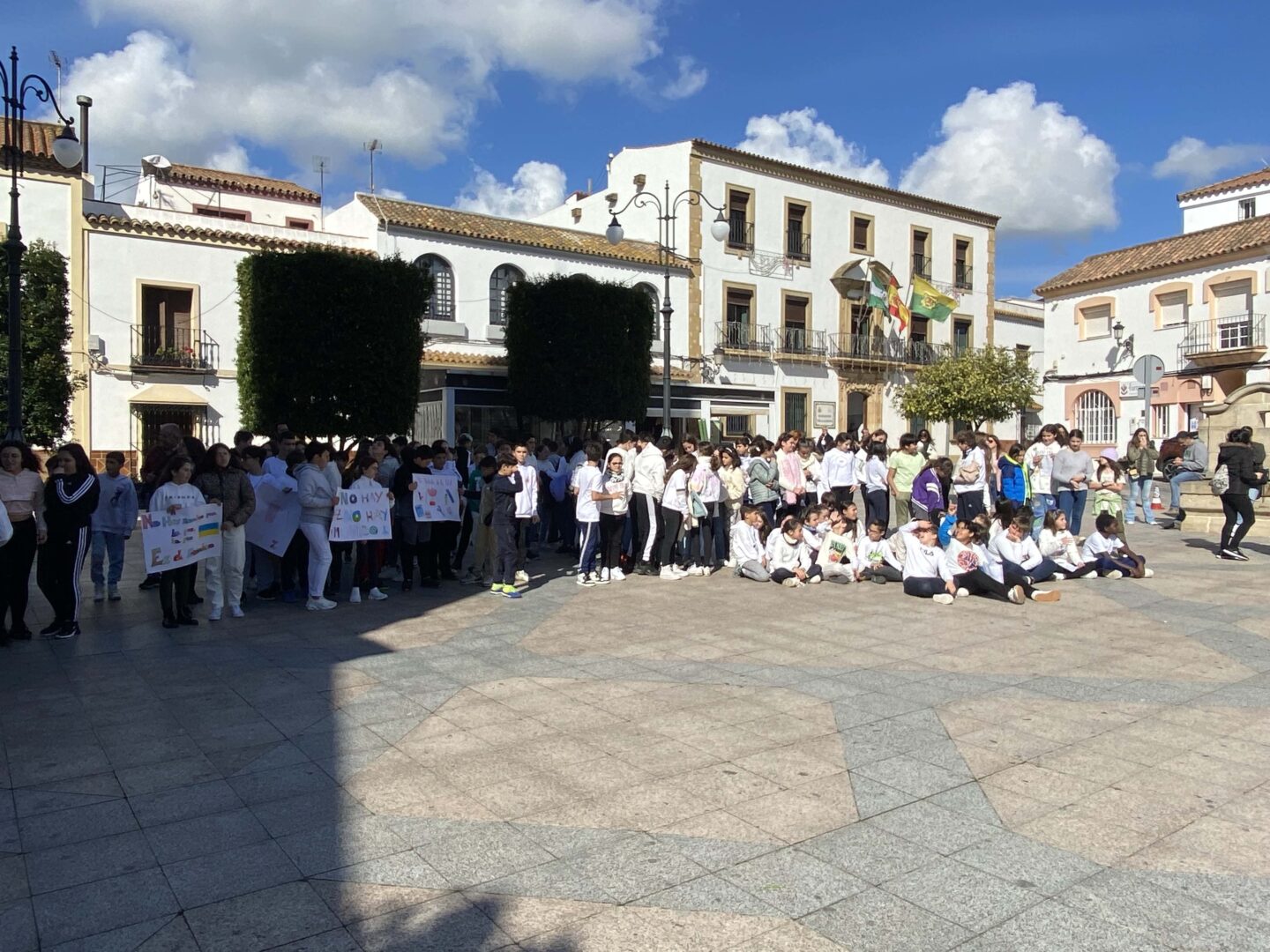 Alumnos y maestros de los centros de Primaria de Los Barrios se han congregado esta mañana en la Plaza de la Iglesia con motivo del Día Mundial de la Paz, que se celebra cada 30 de enero, coincidiendo con el aniversario de la muerte de Mahatma Gandhi, el líder revolucionario indio precursor del pacifismo.