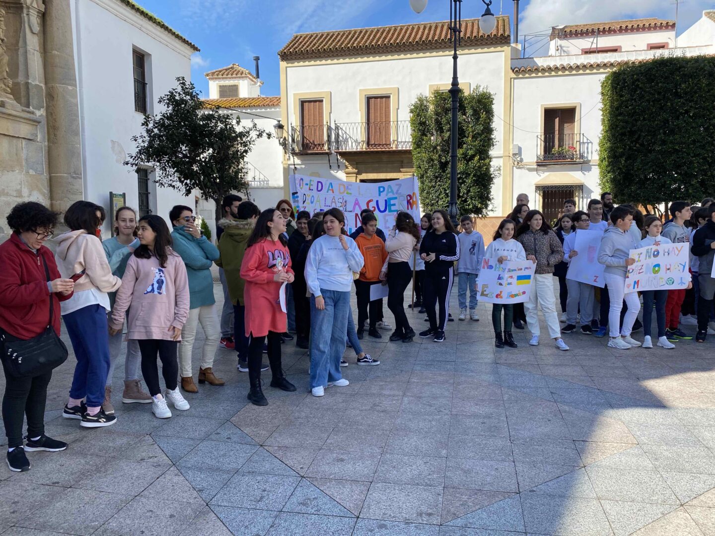 Con proclamas fraternalitas y pacifistas, así como pancartas de elaboración propia, los escolares de la villa han mostrado su rechazo a la guerra y a la violencia.