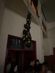 A través de un recorrido del terror, actuando como figurantes alumnado voluntario, han pasado las clases distintas clases por este peculiar pasaje del terror, no dejando indiferente a nadie. La jornada ha sido tremendamente divertida para todo el alumnado de dicho centro, gracias al trabajo de un buen número de alumnos y alumnas y profesores.
