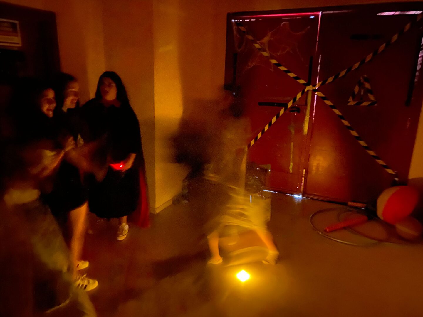 A través de un recorrido del terror, actuando como figurantes alumnado voluntario, han pasado las clases distintas clases por este peculiar pasaje del terror, no dejando indiferente a nadie. La jornada ha sido tremendamente divertida para todo el alumnado de dicho centro, gracias al trabajo de un buen número de alumnos y alumnas y profesores.