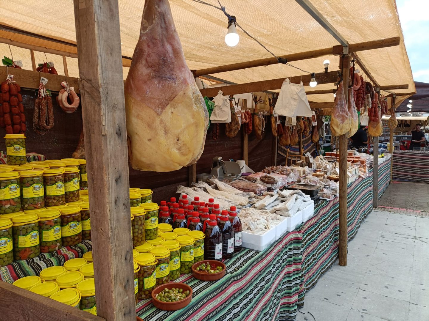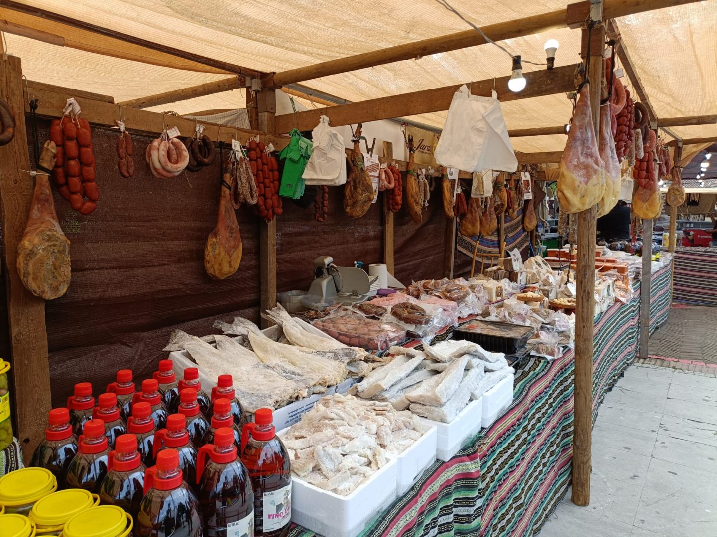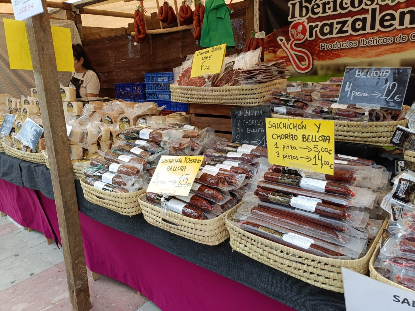Los visitantes podrán encontrar puestos de venta de chacinas, embutidos y derivados del cerdo ibérico de las marcas más destacada como: jamón, caña de lomo, salchichón, chorizo, chicharrones etc. Además de puestos de abalorios, pan, chuchería, productos artesanales, aceite y quesos y de cerveza artesana.