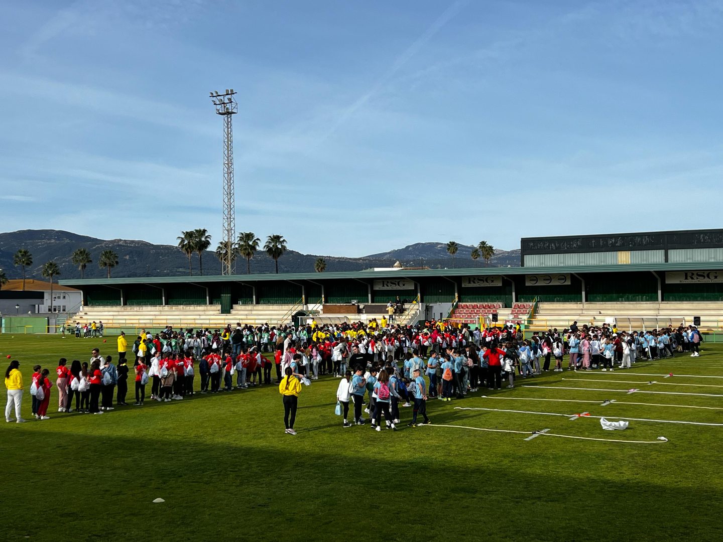 Niños y niñas de 4º y 5º de Primaria de los colegios San Isidro Labrador, Maestro Juan González, San Ramón Nonato y Luis Lamadrid, de Los Barrios, así como del centro de Los Cortijillos y el de Nuestra Señora de Guadalupe de Palmones, han participado en esta jornada festiva y también reivindicativa sobre la importancia que tiene el juego y el ejercicio físico para promover valores y mejorar la calidad de vida.