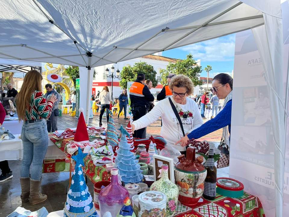 El mercado, en el que los vecinos que lo deseen tienen a su disposición una amplia y variada gama de artículos de elaboración tradicional, regalos, manualidades, bisutería, productos de repostería, etc., permanecerá abierto al público desde hasta las ocho de la noche.
