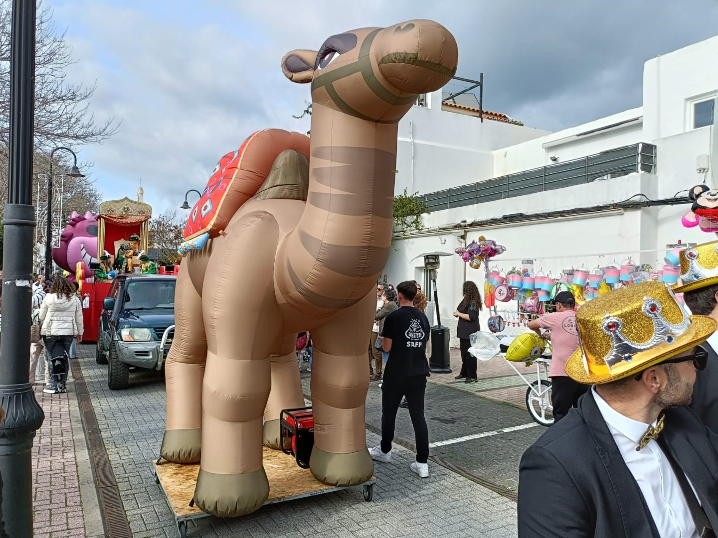 Sobre la una del mediodía salía una cabalgata con hasta tres carrozas han formado el cortejo de los Magos de Oriente, todo acompañado de animaciones dos grandes camellos hinchables y otras animaciones.