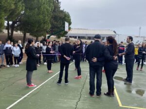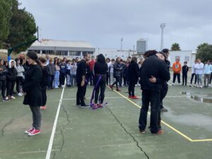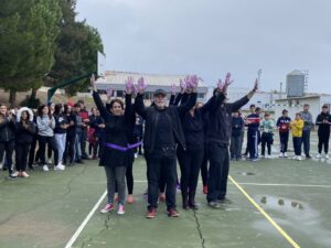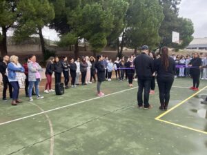 Esta perfomance, que forma parte de la programación preparada con motivo de la conmemoración del día Internacional para la Erradicación de la Violencia de Género, se ha desarrollado en uno de los patios del citado docente y ha contado con la asistencia de alumnos y alumnas acompañados de sus profesores. La actividad se ha repetido también en el Instituto de Educación Secundaria ‘Carlos Cano’.