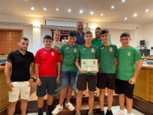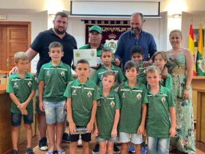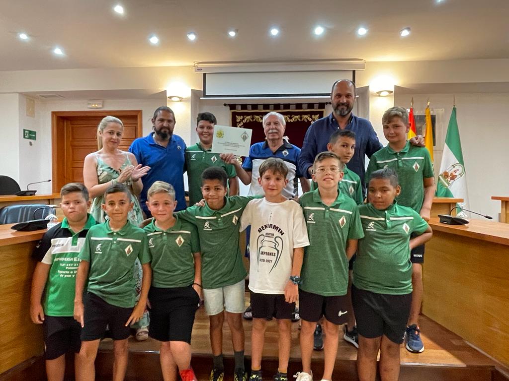 El Ayuntamiento ha querido de esta manera reconocer a estos futbolistas y a su entrenador, cuerpo técnico y presidente. Cada jugador ha recogido su diploma acreditativo en el que se refleja el éxito en la categoría deportiva.