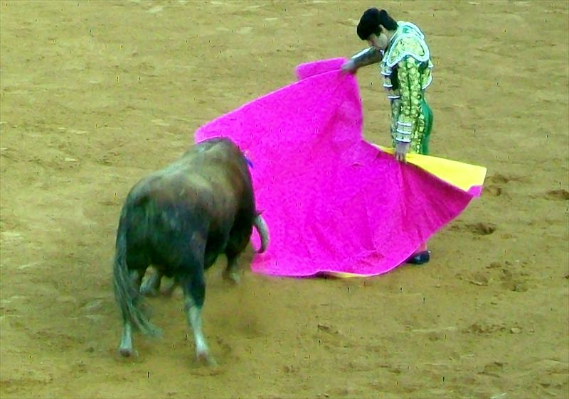 David Fandila ‘El Fandi’, a su primero lidiado en segundo lugar de nombre ‘Nuevacara’, marcado con el número 22 de 514 kilos, lo recibió con dos largas cambiadas, estirándose posteriormente a la verónica marcando el compás, rematando con media siendo aplaudido. En banderillas estuvo el granaino muy enfandilao colocando tres buenos pares siendo ovacionado. La faena de muleta se la brindó al público y la comenzó de rodillas en tablas del tendido 2, le sacó buenos muletazos pero especialmente naturales largos por el izquierdo que era el mejor del astado. Terminó pegándose un arrimón finalizando con desplantes. Estocada concediéndosele una oreja.