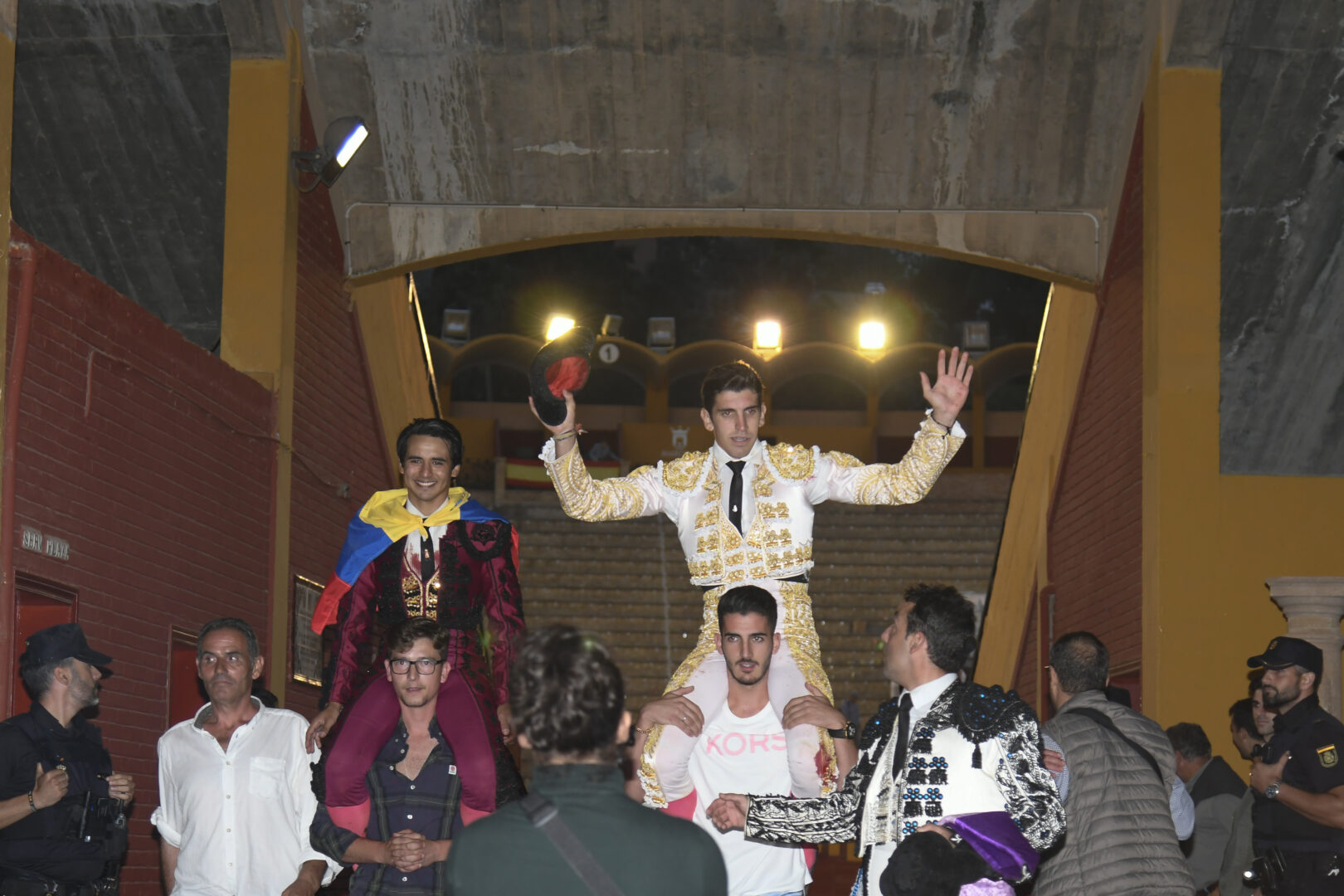El novillero, afincado en Los Barrios, José Antonio Valencia, sale a hombros tras cortar dos orejas en el último festejo de la temporada en Algeciras