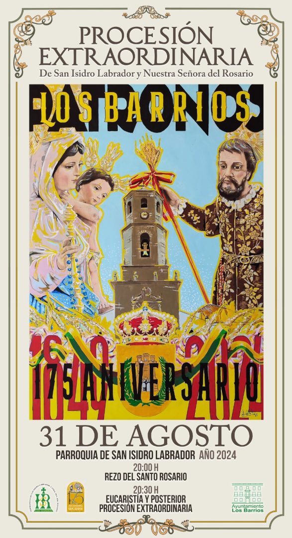 Dichos actos incluyen para ese señalado día el rezo del Santo Rosario en la parroquia de San Isidro Labrador, a las 20:00 horas, más el oficio de la Eucaristía, a las 20:30, y la salida procesional extraordinaria de las imágenes del patrón y la patrona por las calles céntricas del pueblo, una vez finalizada la Misa.