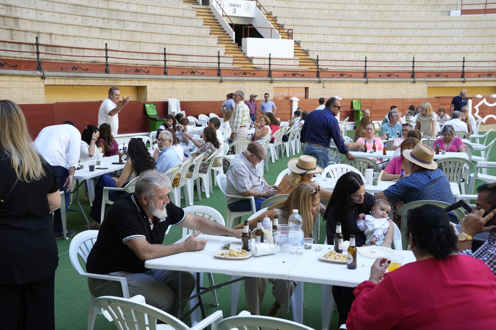 Desde el mediodía, un nutrido grupo de socios y sus familias se dio cita en el coso barreño, transformado para la ocasión en un gran comedor al aire libre. La jornada se centró en un multitudinario almuerzo de hermandad, donde se degustaron platos típicos y se compartió un clima de camaradería y amistad.