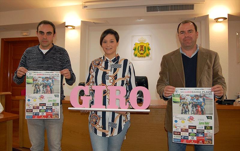 La delegada de Deportes del Ayuntamiento de Los Barrios, Sara Lobato, ha presentado este mediodía en el Salón de Plenos del consistorio la celebración el próximo domingo 17 de febrero de la competición ciclista de carretera Giro Bahía Plaza, junto al presidente del Club Ciclista Andalucía Nature, Joaquín Garnica; y el gerente de Bahía Plaza, Rubén Montes.