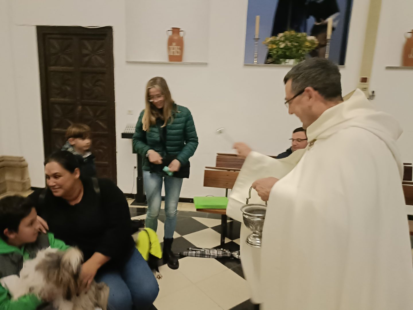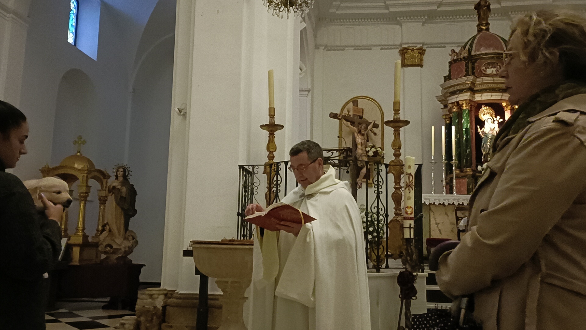 Con motivo de la festividad de San Antón, vecinos de la villa se han acercado a la iglesia de San Isidro Labrador, donde el párroco Juan José ha bendecido a sus mascotas, como viene siendo tradición cada 17 de enero desde su instauración por el sacerdote José Antonio Alonso
