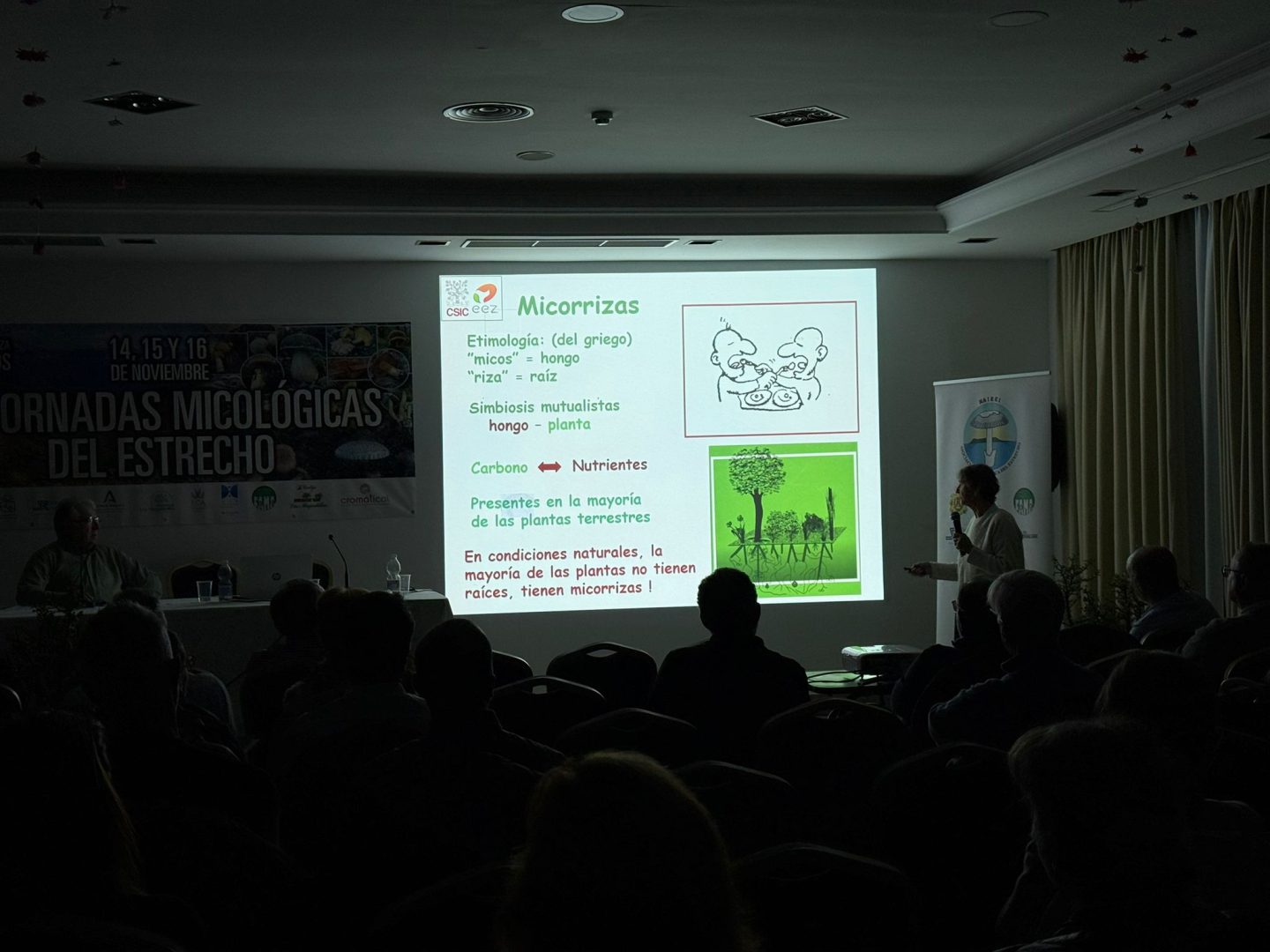 La tarde inaugural ofreció tres ponencias: “Recolectar con seguridad”, del especialista Alejandro Valle; “Hongos agentes de infecciones, micología médica”, a cargo del doctor Hassan Bouziane; y “Micorrizas”, impartida por la investigadora del CSIC Concepción Azcón.