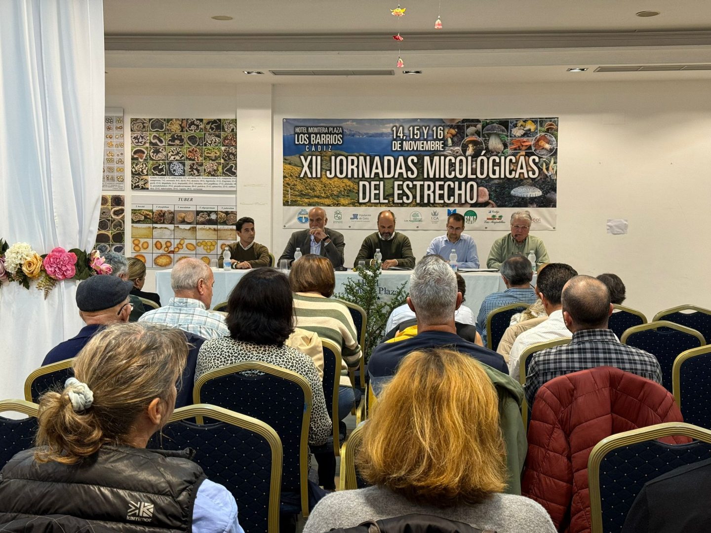 El municipio de Los Barrios ha dado este viernes el pistoletazo de salida a las XII Jornadas Micológicas del Estrecho, un evento que se ha convertido en una de las citas científicas y divulgativas más relevantes del panorama andaluz. La inauguración oficial tuvo lugar en el Hotel Montera Plaza y contó con la presencia del alcalde, Miguel Alconchel; el vicepresidente segundo de la Diputación de Cádiz y responsable del Área de Transición Ecológica y Desarrollo a la Ciudadanía, Javier Vidal; el delegado de Medio Ambiente, Antonio Dávila; el presidente de la Asociación Micológica Mairei, José Antonio Valle Viana; y el catedrático José Gerardo López Castillo, en representación de la Universidad de Cádiz, junto a otros representantes institucionales.