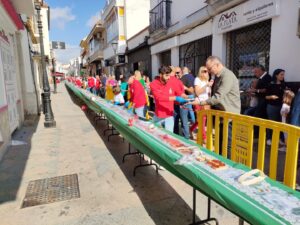 Muchos vecinos y vecinas y visitantes han degustado esta tosta de manera gratuita, después de que el notario Ramón Corrales diera fe y certificara que tanto la longitud como los productos eran los propios para alcanzar el récord.