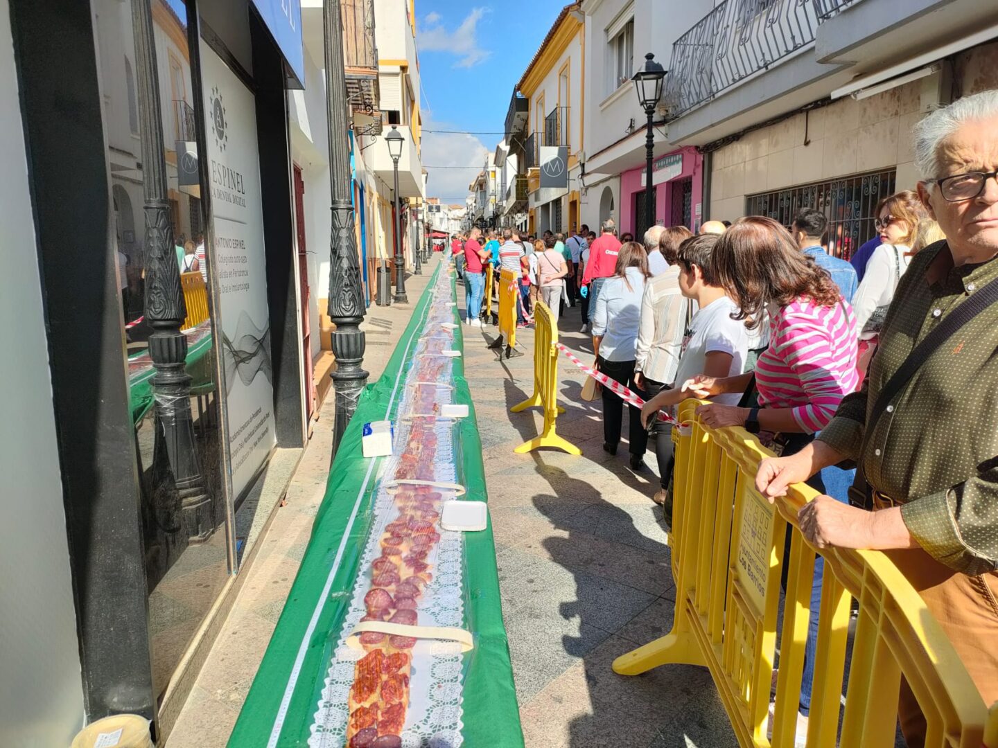 Los Barrios ha hecho historia y ha logrado entrar en el Récord Guinness con la tosta ibérica más grande del mundo con una longitud de 150 metros y 37 centímetros a lo largo de la calle La Plata. El alcalde de Los Barrios, Miguel Alconchel; junto al delegado de Festejos, Daniel Pérez Cumbre, y la mayoría del equipo de gobierno han presenciado este reto, junto a cientos de vecinos y vecinas que se han dado cita en esta jornada calurosa y soleada de noviembre.