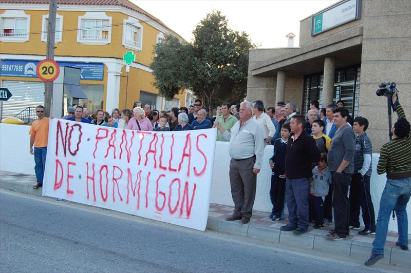 Más de un centenar de vecinos se concentró ayer en el centro de salud de Los Cortijillos para protestar contra de la pantalla acústicas que el Ministerio de Fomento está colocando en la autovía A-7 a su paso por la barriada. Los vecinos solicitan que se instalen estas vallas pero de material traslúcido y no de hormigón.