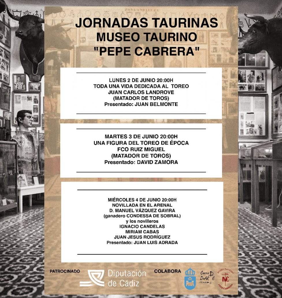 En concreto el lunes 2 de junio, la jornada se titula “Toda una vida dedicada al toreo” que contará con la participación del matador de toros linense, Juan Carlos Landrove y estará presentada por Juan Belmonte.
