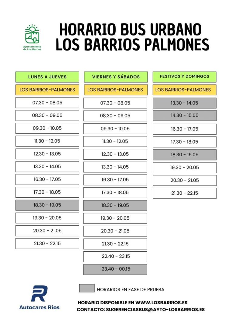 A partir del 15 de septiembre, Los Barrios contará con un nuevo horario del autobús entre la Villa y Palmones. Tras la temporada de playa, el Ayuntamiento ajusta los horarios para adaptarse a las necesidades de los vecinos.