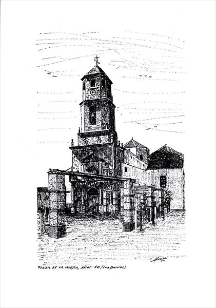 Esa Plaza y Torre de la Iglesia, que fueron escenario de los juegos infantiles y sueños juveniles del autor ha sido recuperada del pasado por sus diestras manos de dibujante tal como él la conoció.