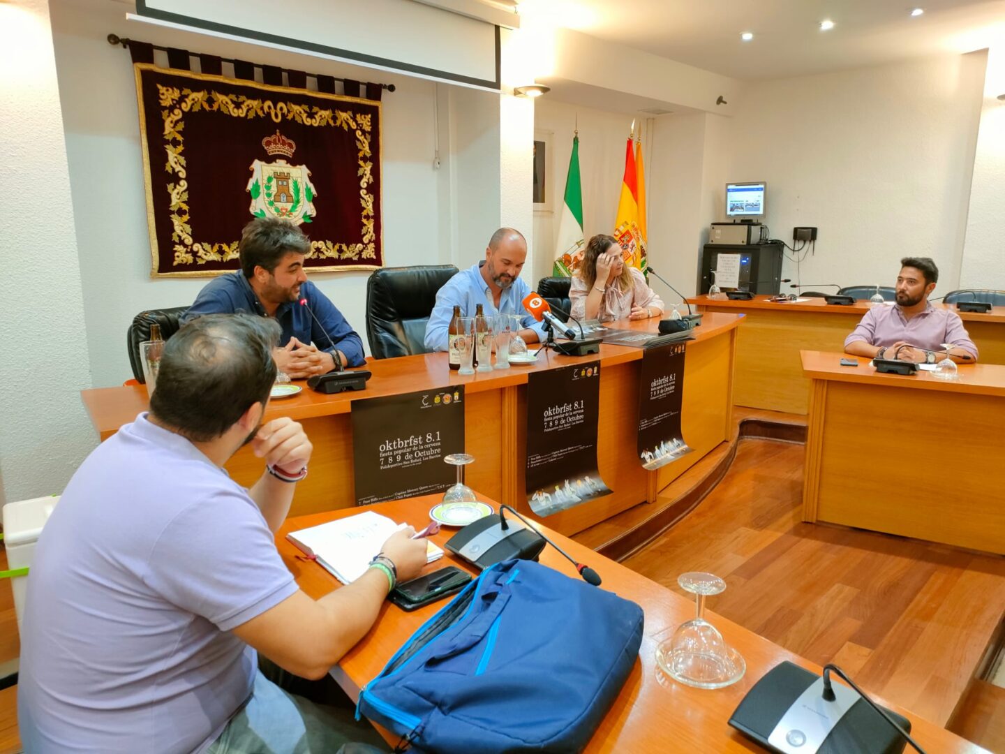El alcalde de Los Barrios, Miguel Alconchel; y la delegada de Participación Ciudadana, Inmaculada Domínguez, han presentado junto al directivo de la Asociación Círculo de Amigos Tres Catorce, Salvador Pérez Prieto, el cartel de la octava edición del OktobeerFest 8.1 de Los Barrios.