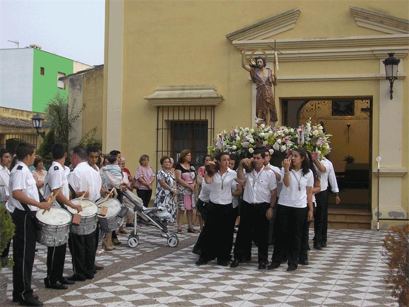 La barriada de Los Cortijillos fue testigo de la procesión de su patrón San Juan Bautista. La imagen del Santo fue llevada a hombros por las mujeres de la hermandad como manda la tradición. Autoridades municipales y representantes de las hermandades del municipio junto al párroco de la Iglesia y devotos del Patrón recorrieron las calles de la localidad el pasado domingo.