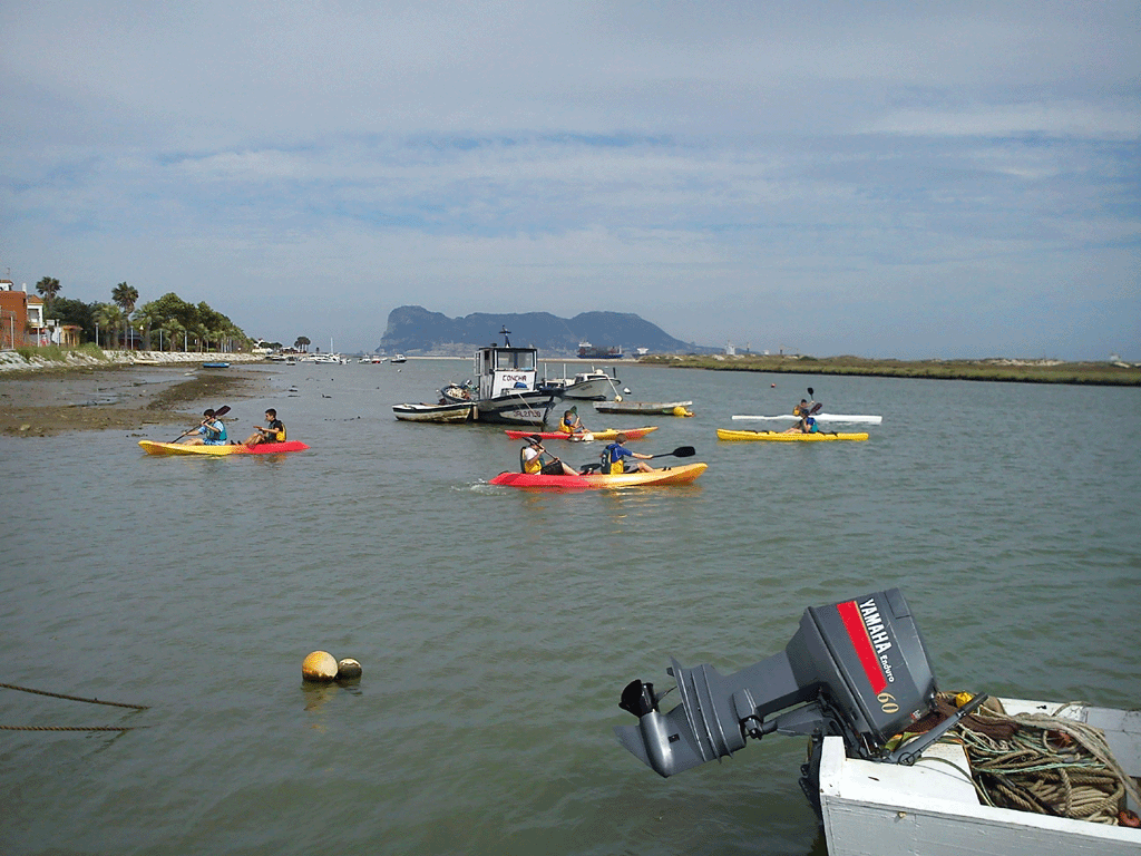 Dávila destaca que “no hay forma más lúdica y divertida de conocer la playa y las marismas de Palmones que subidos en kayak”.