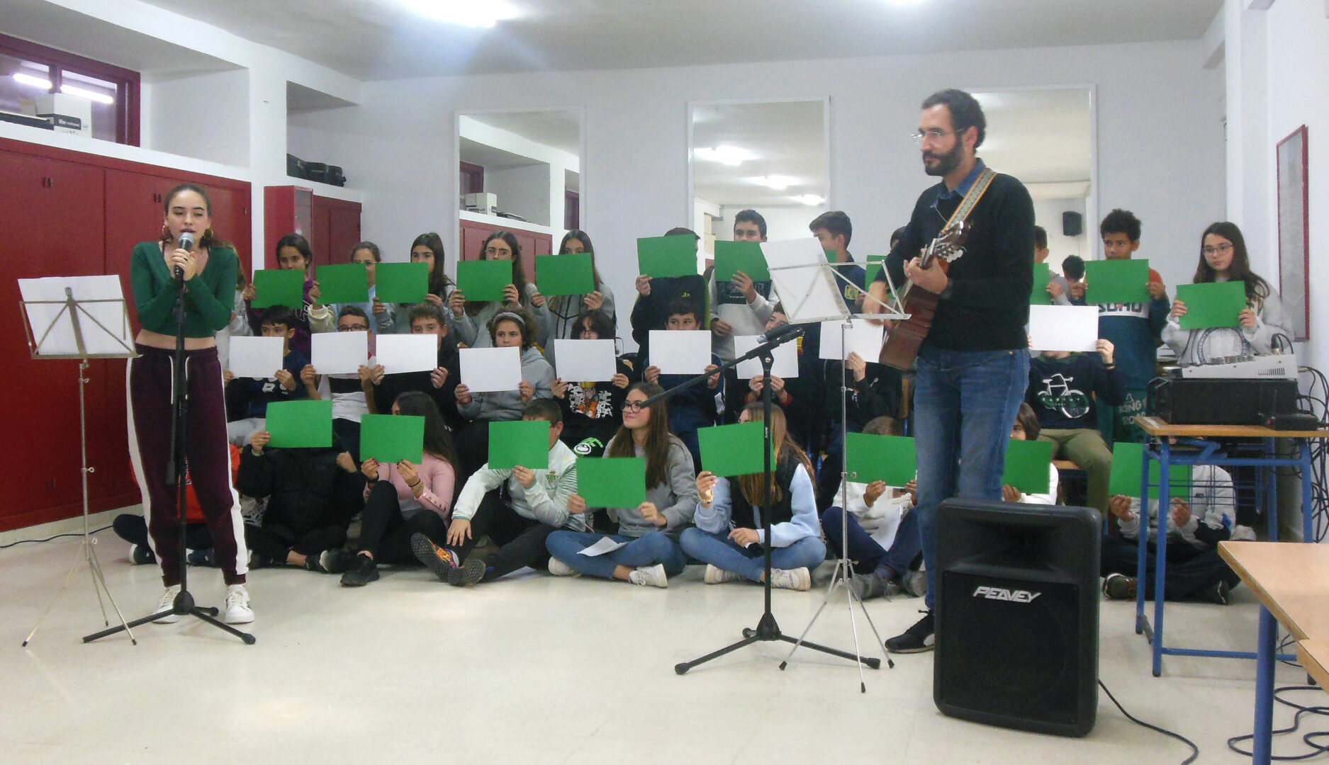 El profesor de música Javier Ríos y al alumna Ana Chicón recordaron ante el alumnado de 1º de ESO el Pasodoble ‘Era un 4 Diciembre’ de la Comparsa de Antonio Martínez Ares ‘Los Piratas’, que fue Primer premio en los carnavales de Cádiz de 1988, y se quedó para el recuerdo como un himno de aquellos acontecimientos. También se recordó la figura de Carlos Cano, cantautor que le da nombre al centro, y que fue clave en la transición andaluza. Las fotografías y videos fueron realizadas por el alumnado de 4º ESO C.
